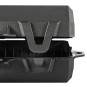 Die SteckerBox Mini in matt schwarz wurde dafür konzipiert, Geräte vor unbefugter Nutzung zu schützen. Alle gängigen Schutzkontakt- bzw. Eurostecker und Kupplungen lassen sich hier sicher verwahren, egal ob abgesperrt dank separatem Vorhängeschloss oder einfach zugeklappt mit den robusten Verschlussbügeln. Auch als Utensilienbox wie z. B. für Werkzeug, Schlüssel o. ä. eignet sich der kleine Stecker Safe hervorragend. Das innovative Design sowie die hochwertige Produktion aus schlagzähem Polyamid wurde komplett in Deutschland realisiert. Dank der zwei seitlichen Ösen lässt sich die SteckerBox Mini ganz praktisch aufhängen oder befestigen.